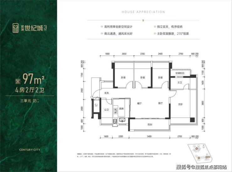 主卧双面飘窗,270°观景