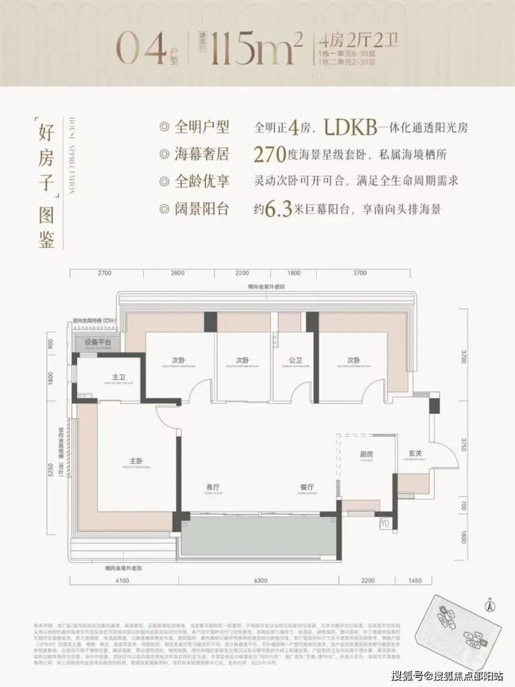 设计上做到80%南向全明大面宽户型,270度采光面,层高约3.15米。阳台面宽起步就是约6.3米,最宽做到约6.8米,把山海景观资源尽可能容纳。