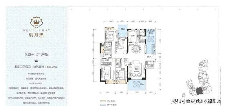 236.27㎡五室两厅四卫,户型方正,南北通透,实用主义空间布局;三面阳台,演绎明朗生活,高品质舒适享受;客厅和主双卧室均朝南向,充足采光,通风流畅;