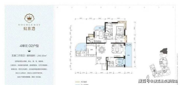 245.55㎡五室二厅四卫,三面采光,洋溢轩昂气度;主卧270度转角飘窗,观野狸岛、日月贝及无敌海景,饱揽城市繁盛;本项目臻品单位,海景资源值得一世珍藏;