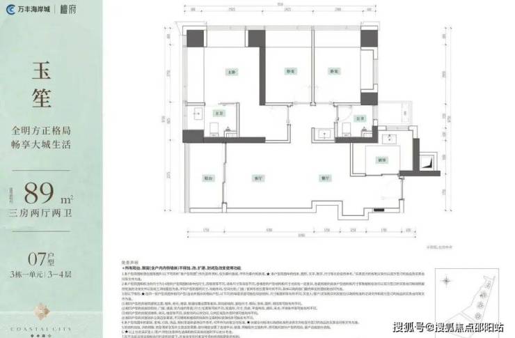 户型品鉴】89-103㎡3-4房约89㎡3房2厅2卫史上入驻海岸城!!最低门槛户型!!户型亮点:• 玄关“S”墙设计,满足冰箱和入户收纳柜• 进深约1.75m大阳台,轻松打造私家小花园• U型厨房设计,洗切炒动线合理布局• 主卧衣帽间+双面飘窗,小户型大享受