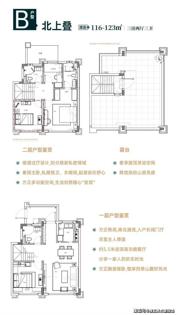 北上叠:建筑面积约116-123㎡三房两厅三卫
