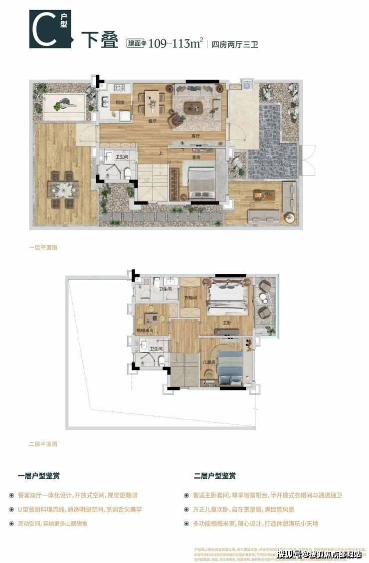 下叠:建筑面积约109-113㎡四房两厅三卫