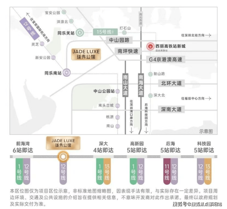 •15号线同乐关站(在建中,预计2028年12月开通),串联宝中/前海/深圳湾/西丽,也被称为深圳“一环线”,本项目为环线上的重要一环;