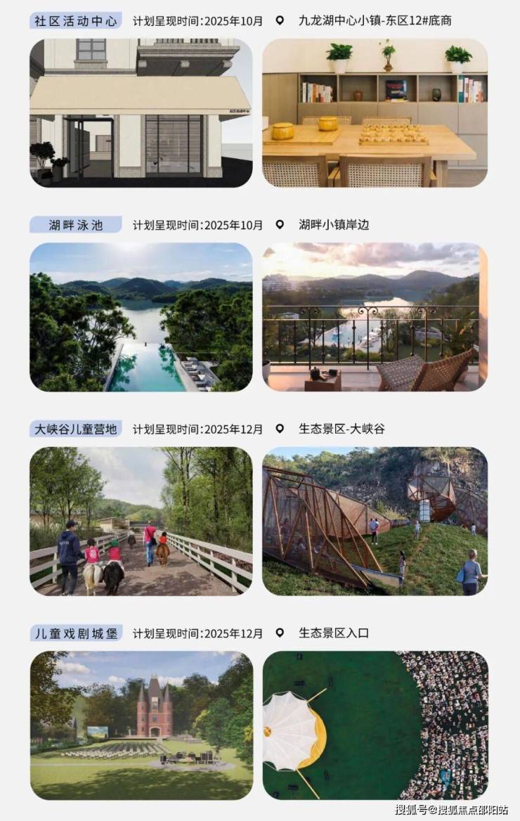 比如项目内部,它还落地了包括艺术中心、业主食堂、儿童城堡剧场、足球场、网球场、寻湖步道、房车露营地、山谷营地等配套设施。