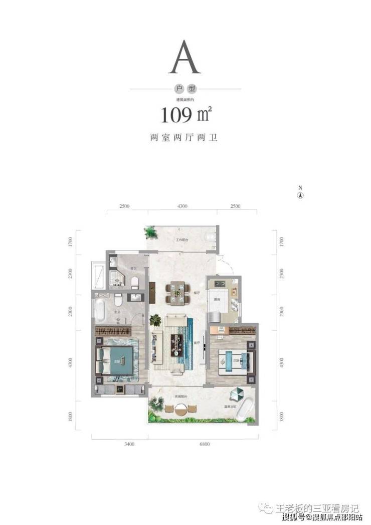 户型图:A户型109㎡两房两厅两卫