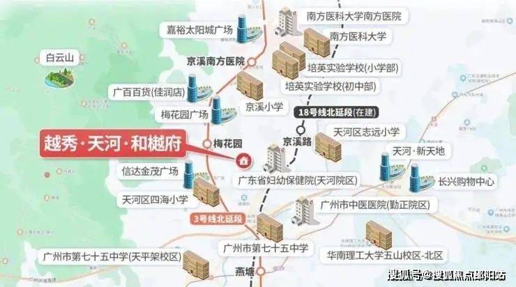 步行至地铁3号线梅花园站约400米(实测数据),4站直达珠江新城,通勤效率极高。此外,在建的18号线北延段京溪路站(2026年开通)距离约850米,未来可快速串联琶洲、冼村等CBD,形成“双地铁黄金轴”。
