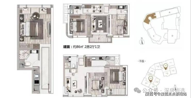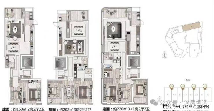 A座:建筑面积约160-220㎡2-3房(南北通透,专梯入户)