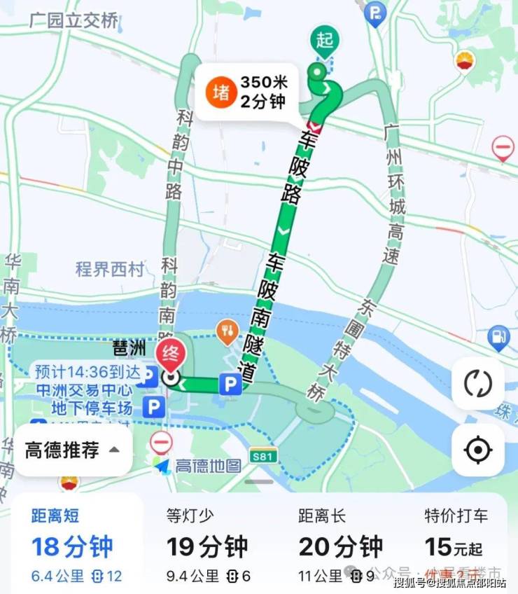 自驾去往琶洲:出小区上车陂路转到新港东路,全程6.4公里,耗时18分钟。