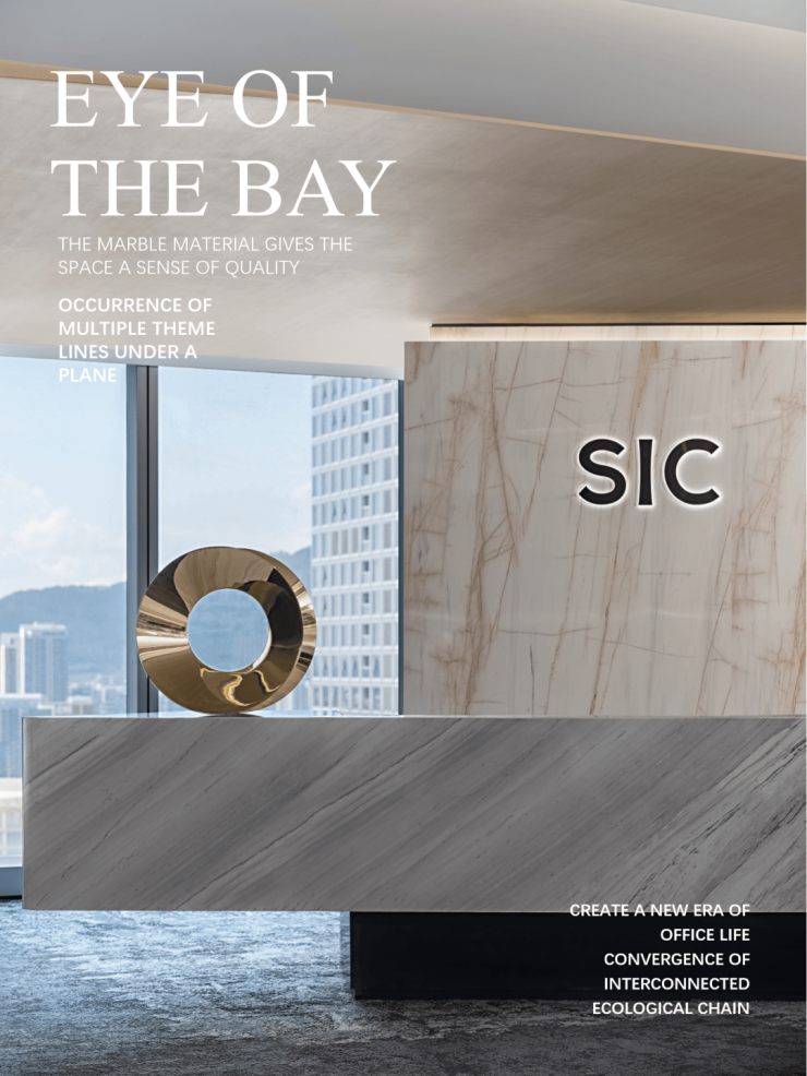 设计以【湾心之眼】的设计理念,挖掘城市发展潜力,突显SIC企业品牌核心价值,通过联动共赢的价值使命,促进沟通、创建社区的企业使命,营造了一个新时代办公生活汇聚的互联生态链。