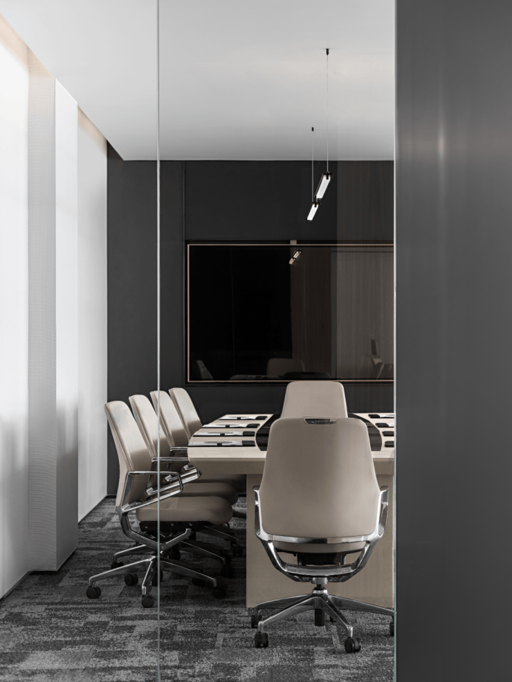 在高级灰的空间氛围里,营造静谧纯粹的现代场所,家具亦回归自然属性,金属、棉麻 、木质等用材的选取以趋于自然的色泽构筑,将空间情调归于安宁与晴暖,结合绿色自然微循环打造可持续的绿色健康办公环境。