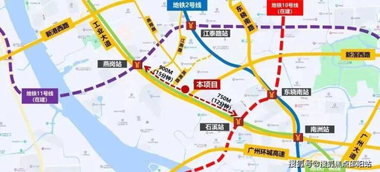 中建天钰位于广佛线燕岗和石溪地铁站之间,拥有“双地铁 x 三地铁线”的交通优势。地铁站步行距离分别为750米和900米,广佛线和10号线(在建)交汇,燕岗站更是大环线11号线的换乘站,出行十分便捷。项目规划为3栋住宅,总建筑面积较小,住宅货量为460套,均为全南向设计,适合改善型需求。