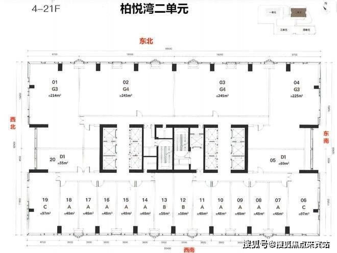 楼层高:1单元5-40层-2单4-43层元商办43层,3-4单元4-48层