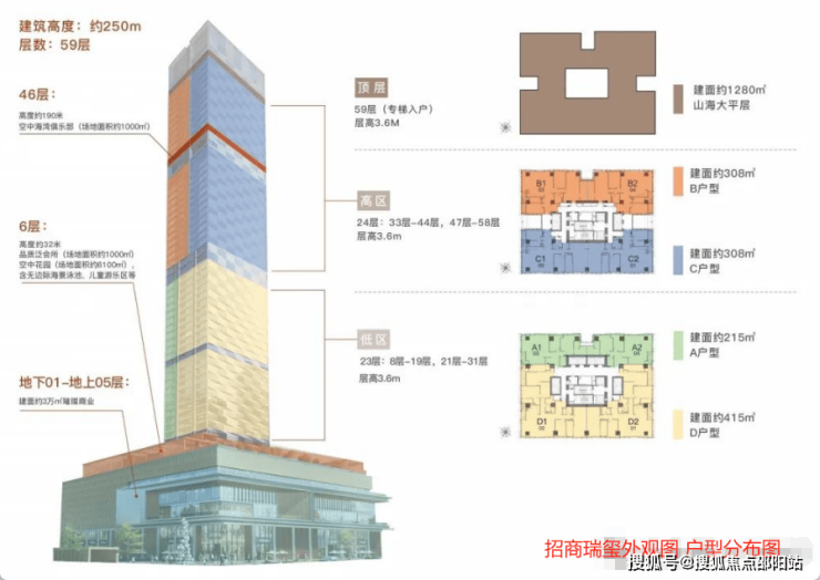 建筑总层数:地下01-地上05层为商业、地上08-59层为品质公寓