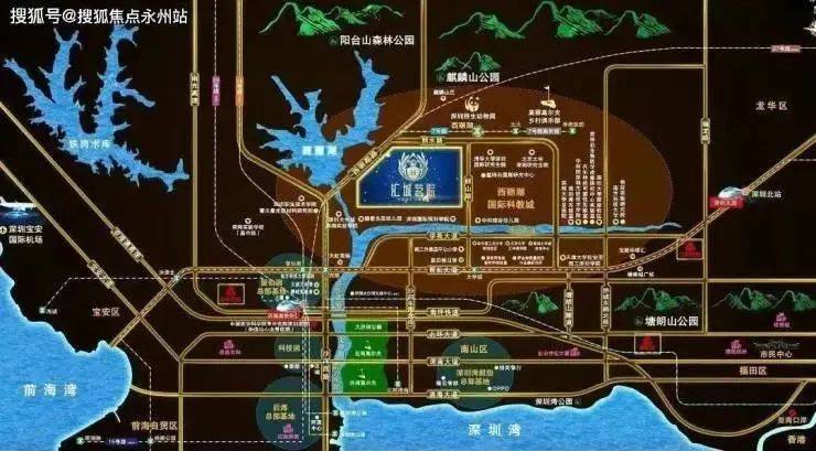 汇城茗院位于南山西丽湖路与丽水路交汇处,属于西丽湖国际科教城区域,南面近沙河支流,北面高层可以看西丽水库。