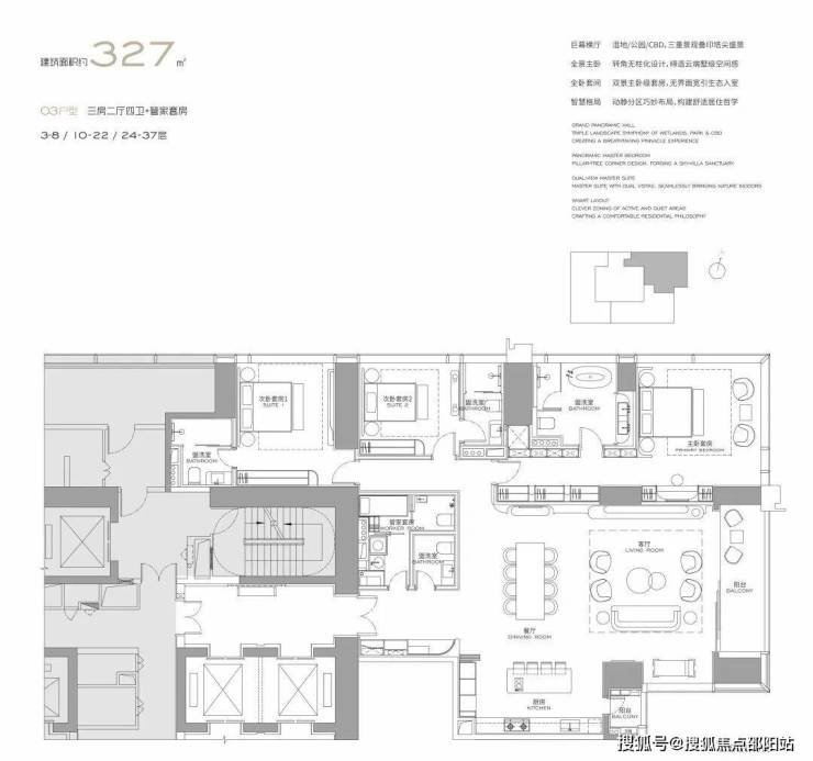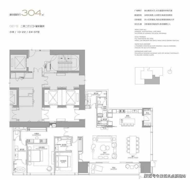 首推T3栋约123套面积304-327--402-570-1032㎡户型,304㎡做2房3卫+家政套间,327㎡做3房4卫+家政套间,402㎡做4房4卫+家政套间,
