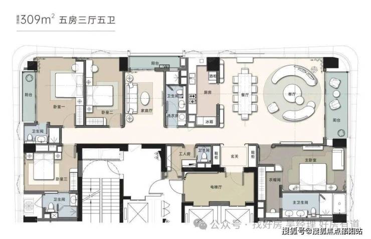 · 户型亮点:全功能主卧套间+父母套间+小孩房+工人房的完整配置,媲美家族大宅