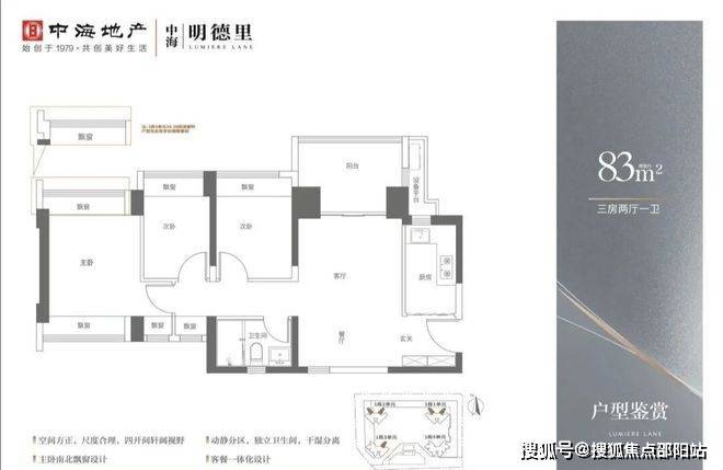 产品面积段:建面约83—113㎡三至四房