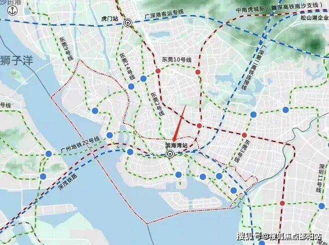 东莞滨海湾新区处粤港澳大湾区的几何中心,由长安新区、沙角地区、威远岛三大板块构成,是湾区极点的链接纽带、区域协同发展的智创平台。项目距离2号线三期的终点站-交椅湾站(建设中)仅约500米,交通十分便利。