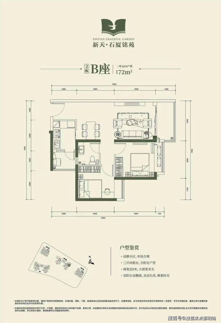 2房2厅1卫72㎡