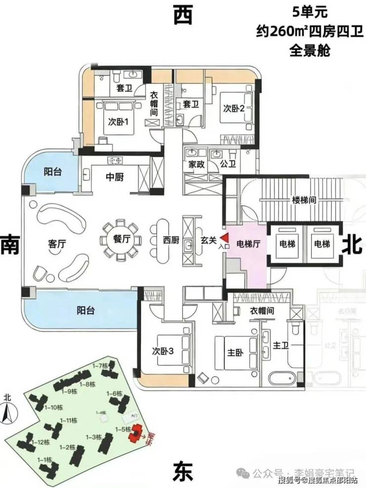 做到2梯2户和3梯3户,专梯入户、户户朝南,新规户型使用率近100%,全通透弧形飘窗+观景大阳台设计。主打四房以上大平层产品,让项目与周边"刚改盘"彻底划清界限。