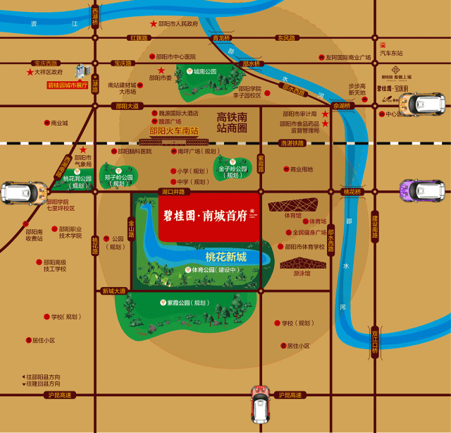 作为大祥区“三城两区一枢纽”重要规划中开发的城区地,体育新城坐拥资水、邵水、紫霞山等天然山水禀赋,享受体育公园、桃花洞公园(规划中,来源政府规划图)、紫霞公园(规划中,来源政府规划图)、邵水生态绿带等自然城市绿心,在“拓荒式”城市开发的今天,12.8平方公里的体育新城,俨然成为邵阳“活力之都、文化之城、生态之都、公园之城”,绽放出“新邵阳之美”。(“三城两区一枢纽”中的三城分别为体育新城、宝庆新城、北塔新城)