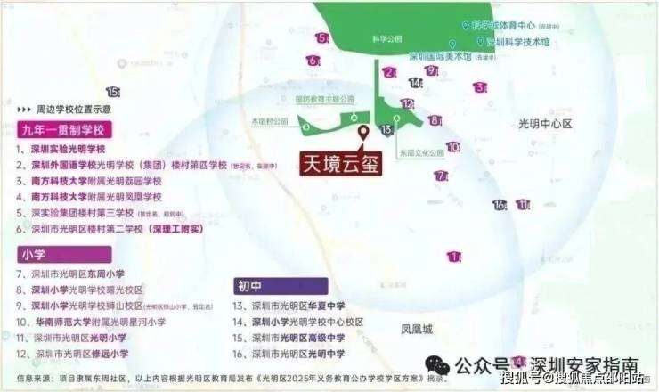 振业天境云玺属于光明街道翠湖社区,根据光明区2025年的学区划分来看,小学学区划分在光明小学、东周小学、