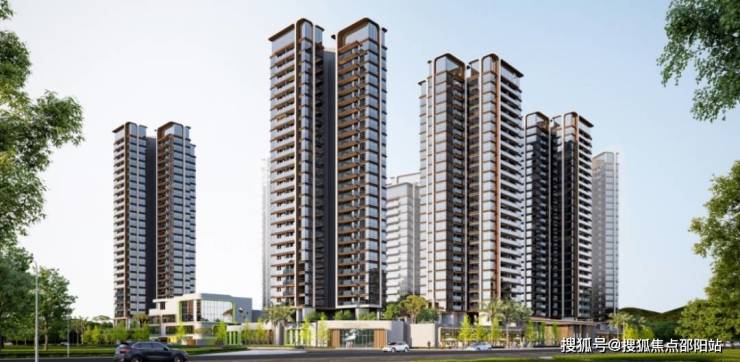 从效果图上看,项目规划9栋住宅和1所幼儿园,8栋塔楼约26层高和1栋十几层的板楼结合,采用合式布局。