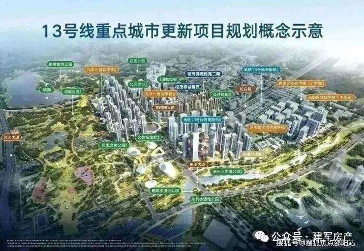项目位于广深港科创走廊重要节点的“世界一流科学城”光明,归属凤凰城街道,邻建面约383万㎡13号线重点城市更新单元(在建),占位光明城市发展的“价值洼地”,同享磅礴产业规划红利。13号线重点更新项目(在建),总投资约420亿元,其体量约为光明城站TOD的25倍。将结合13号线月亮路站塑造、城市蓝绿公园网络提升、产城空间更新,无限链接生产、生活、生态要素,建设成光明区“三生融合示范区”。