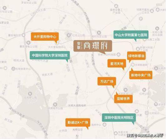 比如在项目东面的光明狮山利益统筹项目,是光明区8个土整利益统筹试点项目之一,将崛起一批高端商业综合体、高品质住宅区,打造光明科学城中央活力商务带。