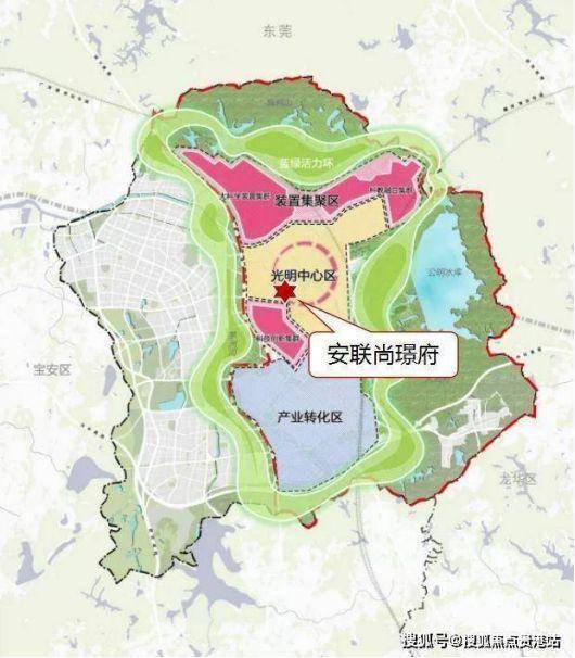 其中的科学城中心区,北邻科学城装置集聚区,南接光明凤凰城产业转化区,东侧延展至华侨城光明小镇和大顶岭,都市风光及生态资源兼得。