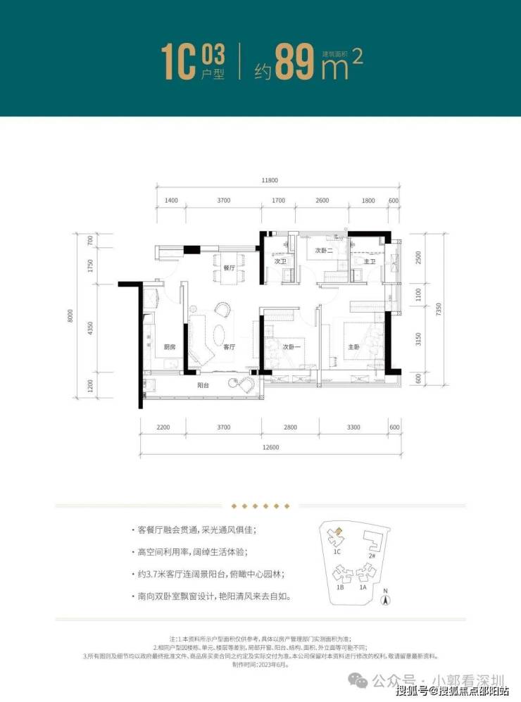 约3.8米客厅开间;双阳台设计;三开间朝阳,通风采光俱佳。