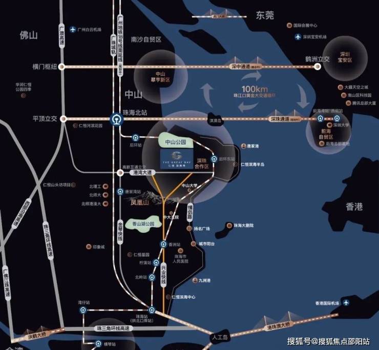 黄金内湾交通枢纽:湾区西岸枢纽,地处「珠江口100km黄金交通大循环」核心节点