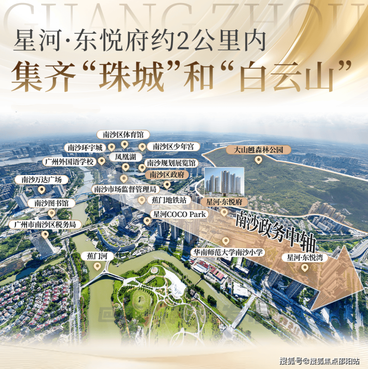 南沙区政府、三馆一宫、南沙中心医院、南沙外国语学、蕉门地铁站等,半数以上的高端市政和配套资源都汇聚于此。