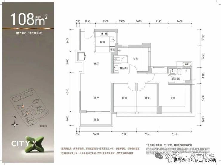 建面约108㎡4房2卫,是陪伴三代同堂/多孩家庭成长的户型。