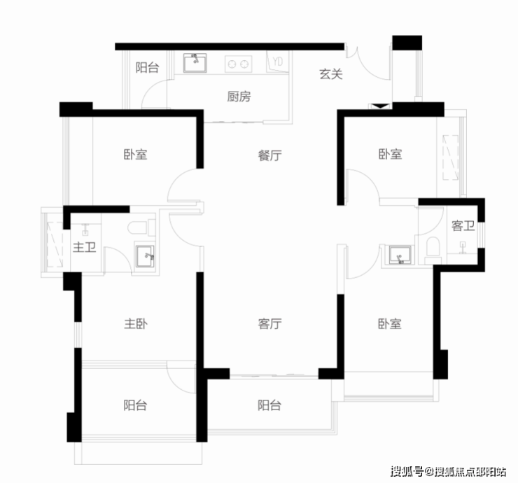【115-118㎡4房2卫户型】 双龙抱珠设计,主要生活空间 ,看中心园林景观舒适四房,三面采光,全明户型 单价区间:7.57-7.82万/㎡ 总价区间:878-920万