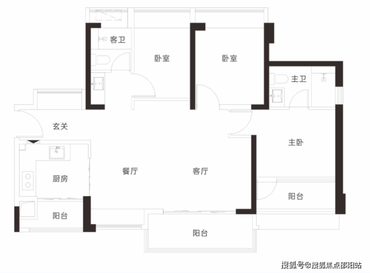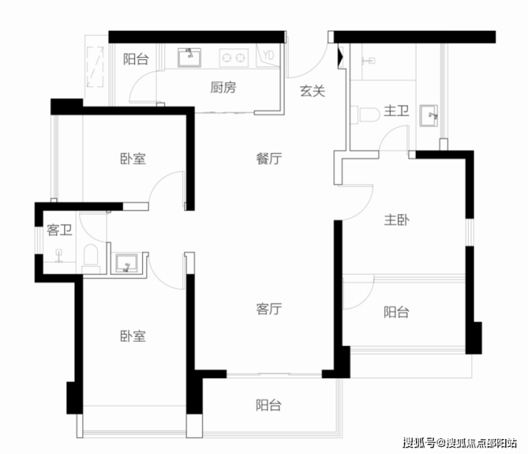 【96-97㎡3房2卫户型】三开间西南朝向,视野采光俱佳功能实用三房,动静分区无干扰,单价区间:7.17-7.64万/㎡ 总价区间:688-738万
