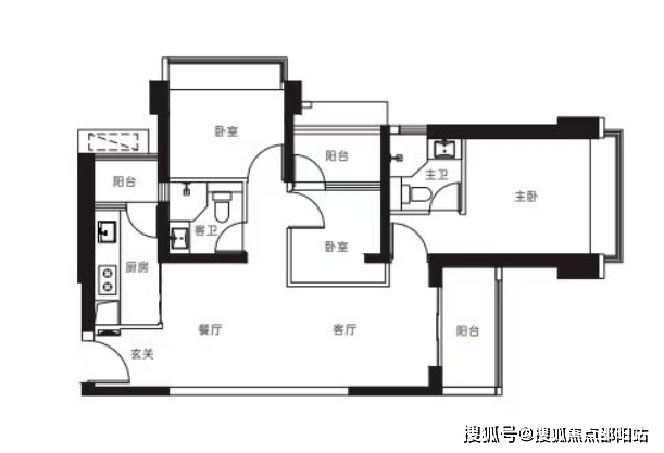 【3栋4栋03户型107㎡3房2卫】 客厅横厅朝南带阳台,主卧朝南,2房朝北 单价区间:7.2-7.5万 总价区间:770-805万
