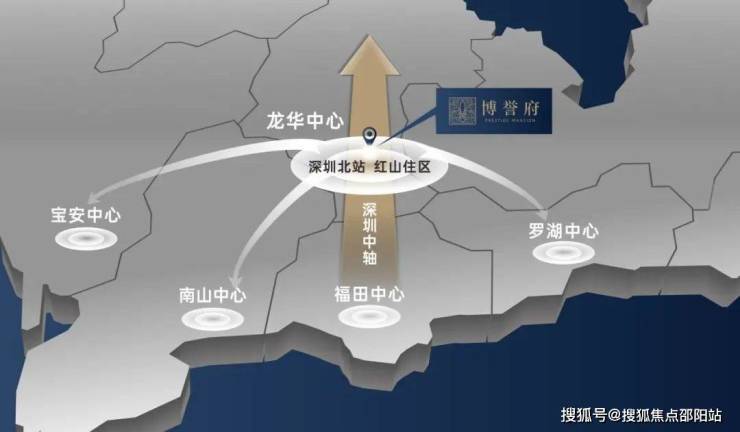 圳心中轴:北站红山双芯加持,深圳“中轴脊梁”l 深圳龙华——傲踞深圳地理中心和城市发展中轴,铸就产值万亿级的深圳“中轴脊梁l 鸿荣源博誉府坐享中轴优越地理位置,多维立体路网加持,30分钟内驰骋宝安、南山、福田、罗湖区,悦享高效便捷生活