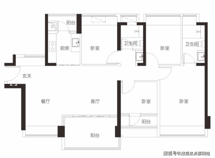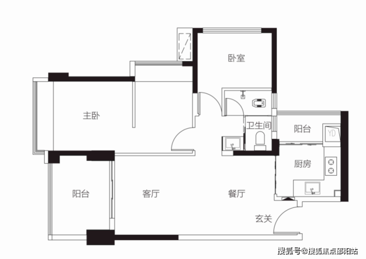 【1栋2栋01户型94㎡3房2卫】 客厅朝东带阳台,主卧朝东,2房朝北