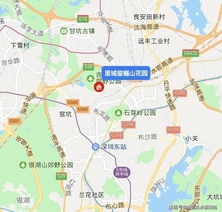 里城玺樾山,位于龙岗区吉华街道三联社区,项目背靠三联郊野公园,从大区位来看,北邻平湖,西邻坂田,南邻布吉中心区,东邻横岗片区。