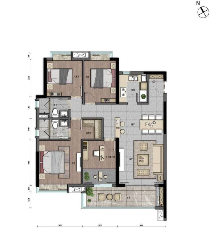 128㎡ 4房2厅2卫户型图