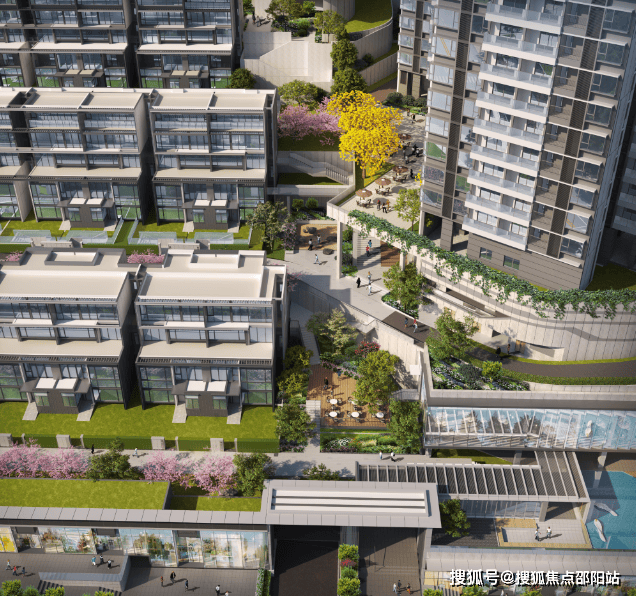 九曲花街景观长廊:山谷式归家廊道,蜿蜒婉转,植入林桥、花涧、叠翠、山廊四景,营造诗意归家体验;