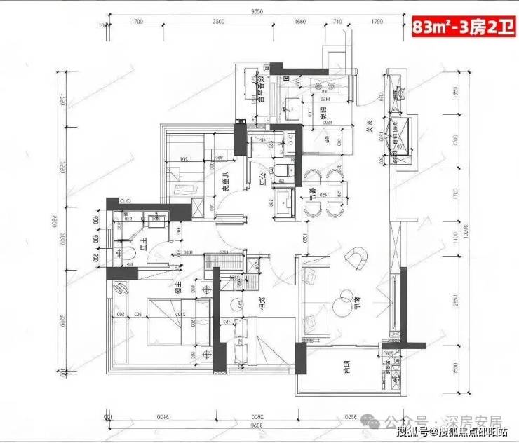 83㎡3房2卫:约340-357万;