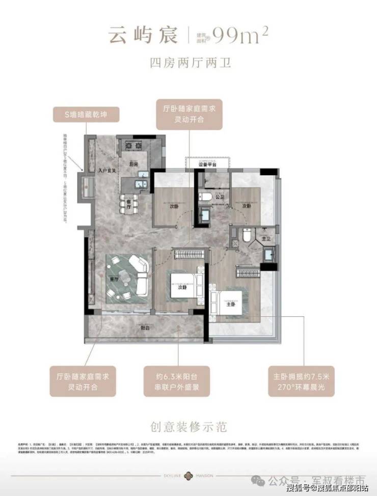 ★宸式新著 时代藏品建面约83-133㎡3-4房宸式美学新著,LDKB巨幕方厅,跑道式景观阳台,小家化星级酒店主卧套房,270°环幕全景舱,客厅次卧无剪力墙灵动设计,实现超高实用率,每一户皆是颐安“超新一代作品”的匠心宣言。
