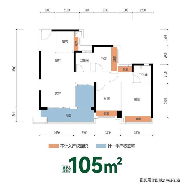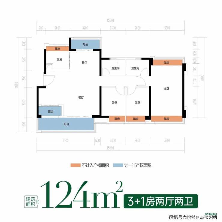 主卧双飘窗+次卧等面宽飘窗,全赠送高拓空间