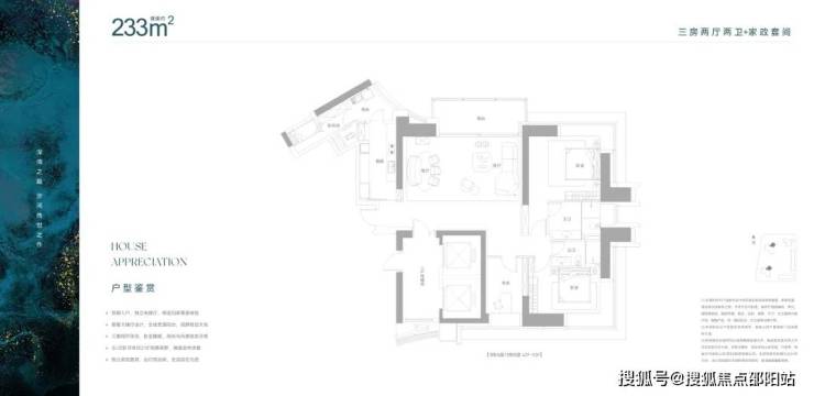 专梯入户可以利用做玄关和鞋柜,典型的现代大平层设计,餐客厨阳台(LDKB)一体的动区,分中西厨。中厨连通家政套间,门面和尾端互不干扰。