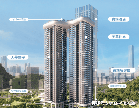 约150米云台:云集空中酒店、荧光跑道、无边际泳池等;