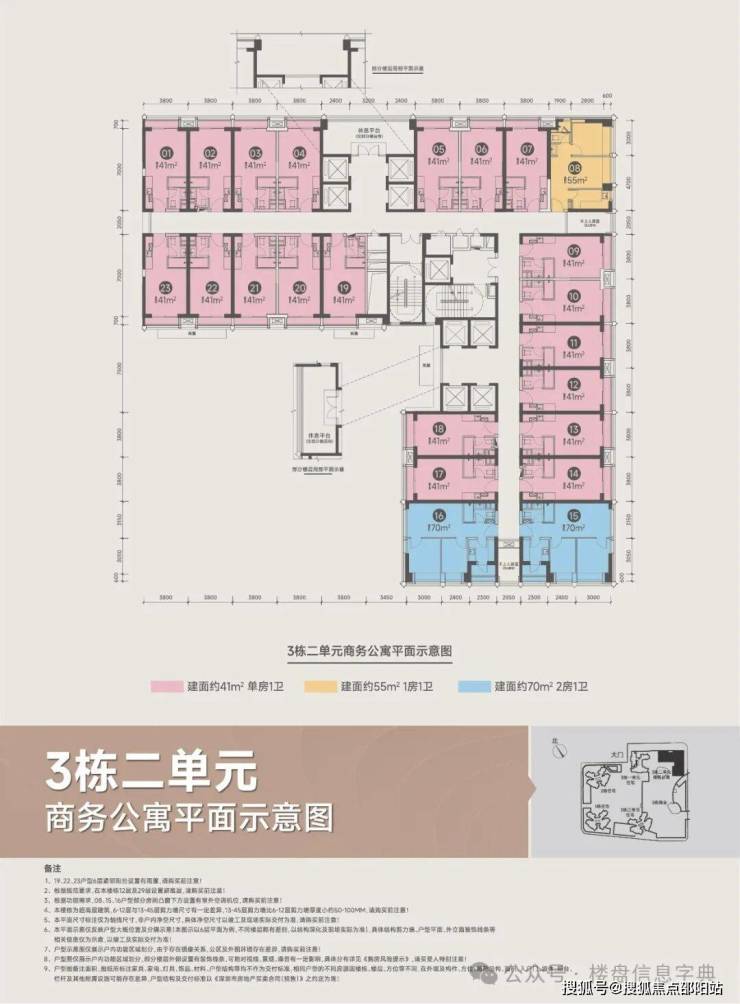 (41㎡单间760套、55㎡一房38套、70㎡两房76套)