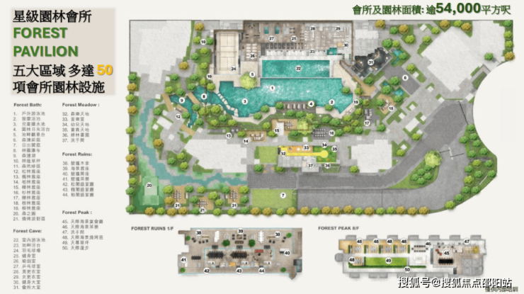星级园林会所FOREST PAVILION五大区域,多达50项会所园林设施,由两大国际级设计名师联手打造,自然元素融入园境和会所设计中,打造PAVILIA系列全港首个「森林浴」住宅项目,营造了一个远离喧嚣、回归自然的居住环境。